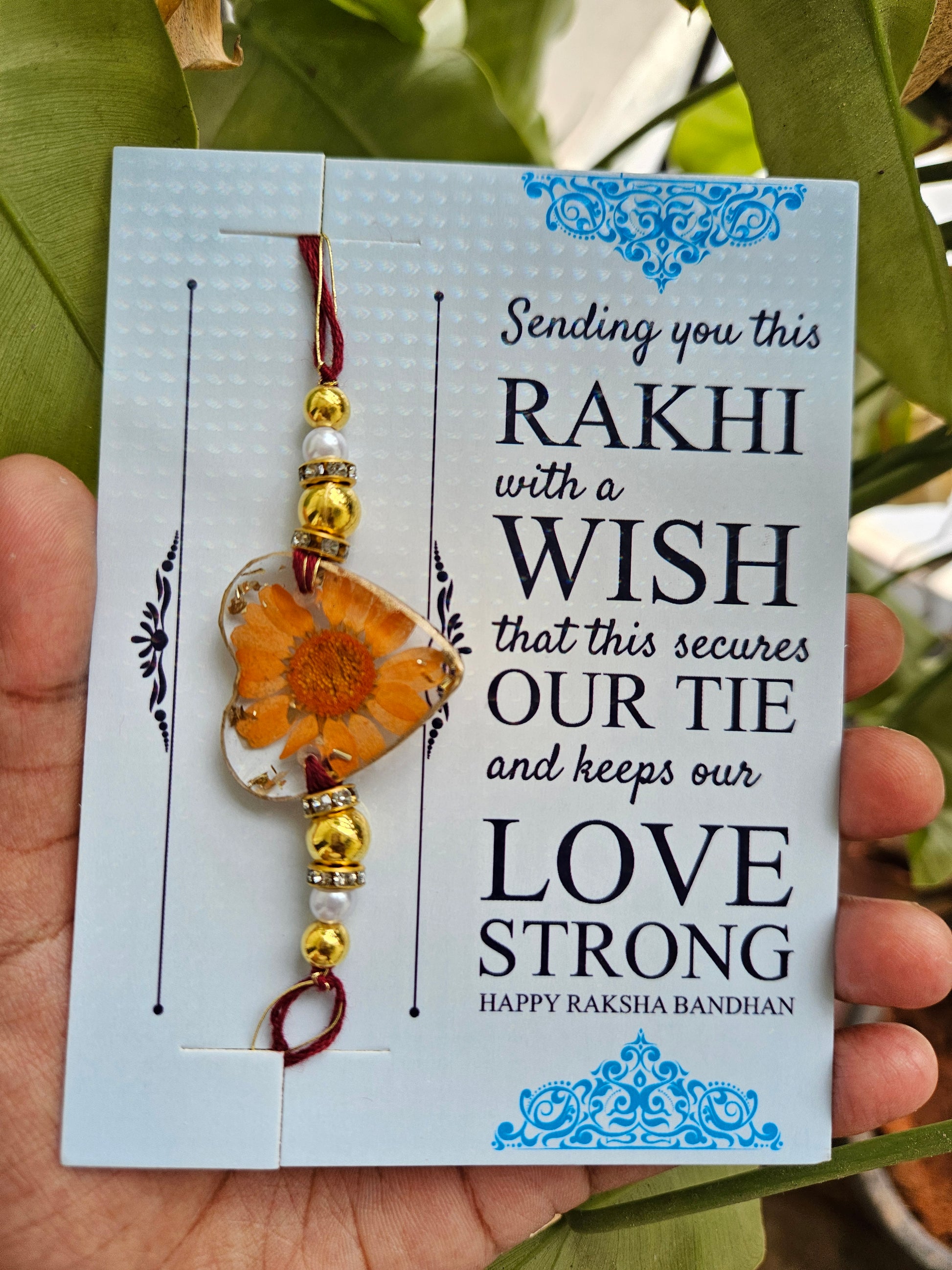 Celebrate Raksha Bandhan 2024 with our charming Blush Heart Rakhi, a perfect way to honor the special bond between brothers and sisters. Handcrafted with a real orange daisy flower in a heart shape, this unisex rakhi symbolizes love, tenderness, and deep affection.