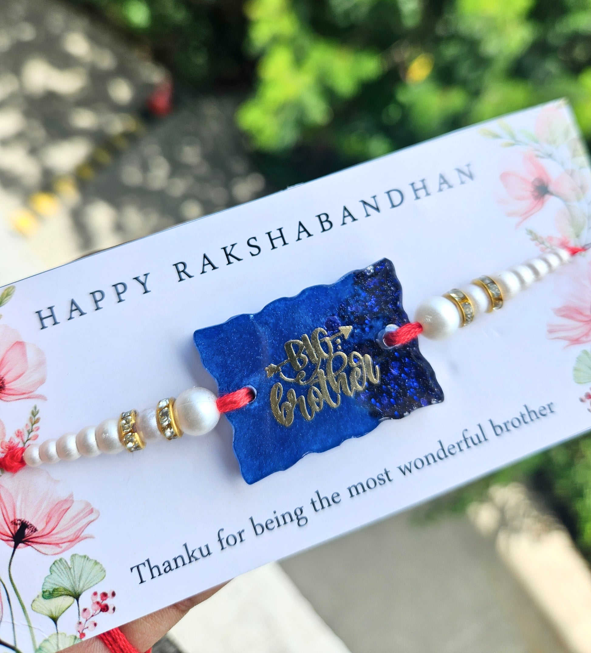 Note: Each rakhi is unique, and the arrangement of resin with golden flakes may vary slightly from the product images.