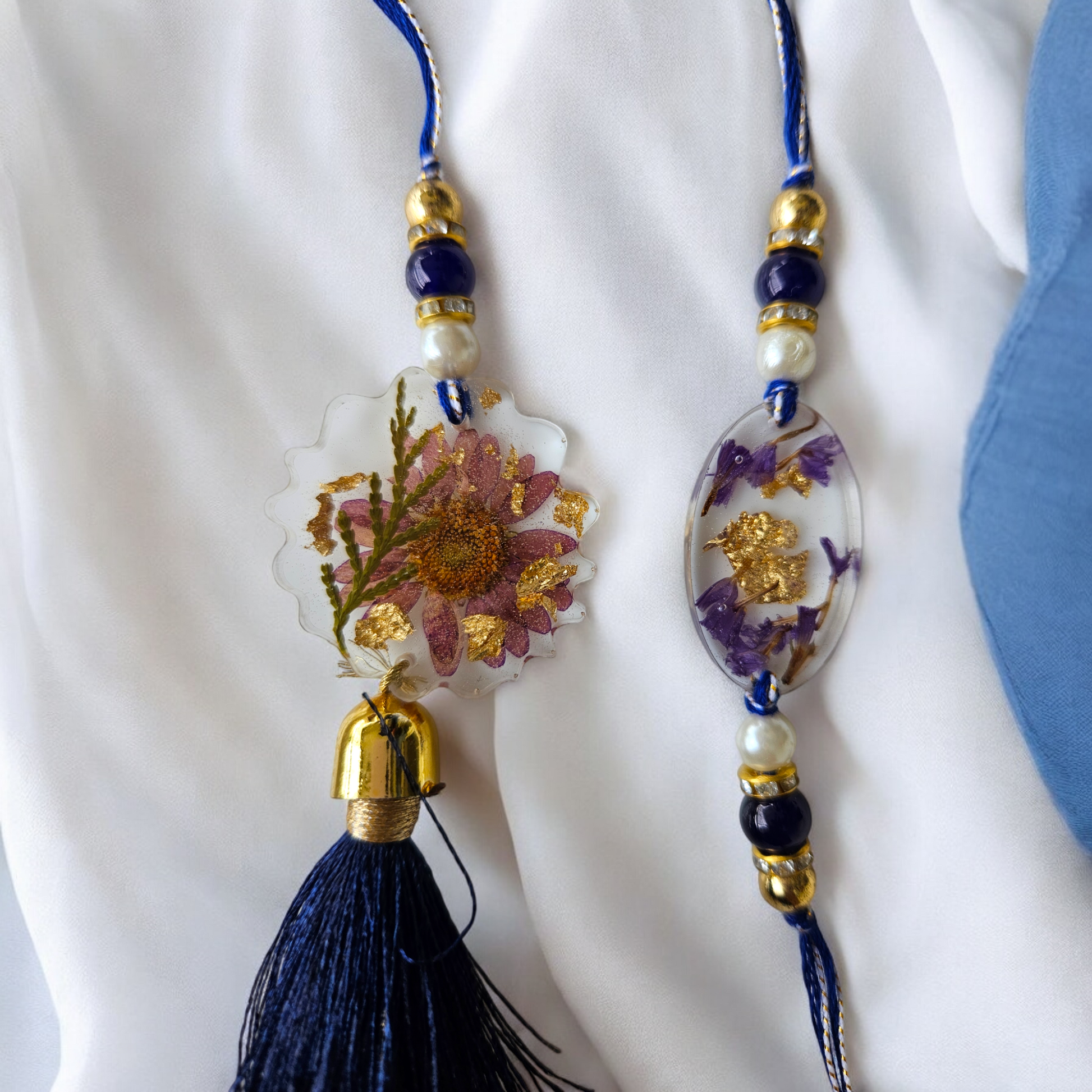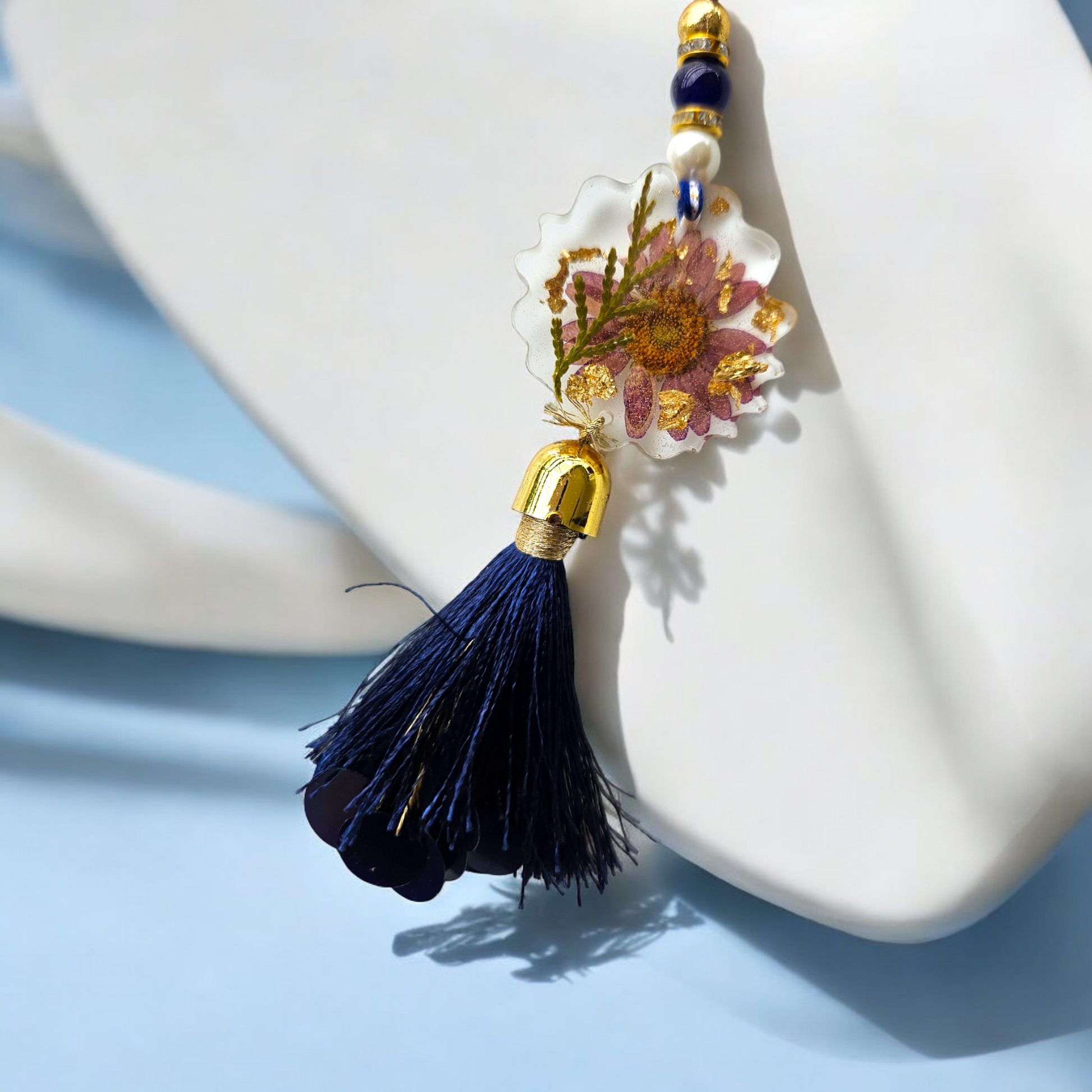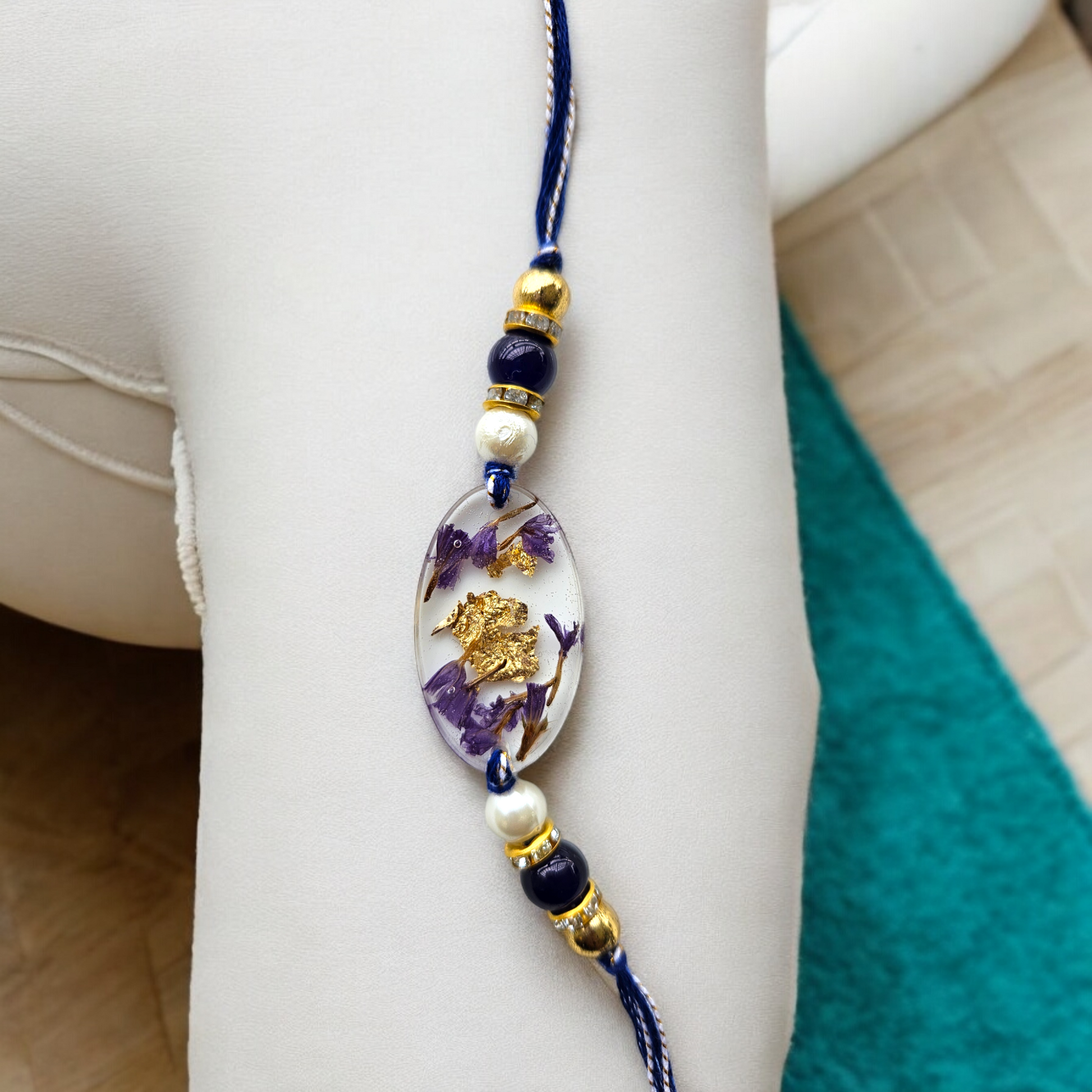 The beautiful purple daisy rakhi is designed for your beloved brother, while the matching lumba is perfect for your sister-in-law, making this duo an ideal gift for Raksha Bandhan. The intricate detailing and natural beauty of the purple daisy flower add a touch of sophistication and uniqueness to this rakhi lumba set.